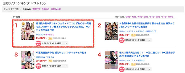 所以她马上空降拿了个单日销售冠军。对,我知道是Faleno特典版又送内裤又送拍立得促销才能卖这么好,但不管怎样,S1时代的桥本不管什么时候都没有拿过单日销售第一的: