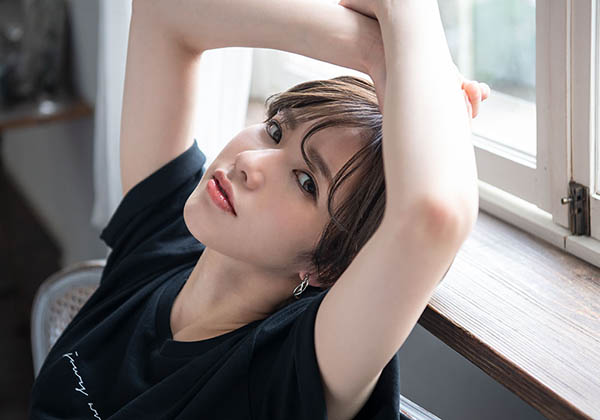 对,没错,SOD的子品牌KMHR是以ハンサム(英俊)来形容这位卖汉堡的女孩:和小岩いと(小岩伊都)完全不同,也是短发造型的滝沢ライラ(泷泽莱拉)皮肤白晰身形高挑,坦白说,这位新人说是卖汉堡的我还真不信,她明明很像坐在办公室狂谯部下的新闻部主管,「霸道」这个形容词比较适合她,「英俊」两字放在她身上有点怪怪的;不过可别以为这样外表的她对星爱没什么兴趣,相反地,滝沢ライラ(泷泽莱拉)是个妄想女子,每天都在幻想自己被插到痉挛的样子⋯