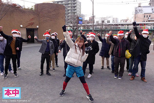 游戏规则是什么呢?在去年的圣诞节,公司是召集了一般人、大学生、资深汁男星、欧吉桑以及第7世代暗黑男星一起到横浜港玩游戏,美谷朱里会到各个景点自拍美照上传twitter,这些都是单身、想在圣诞节搞大人家肚子的参赛者在看到照片后就要到同一个点用同一个姿势拍照(要露脸以防作弊),照片最多的参赛组就拿到胜利,可以肆无忌惮地里出美谷朱里⋯