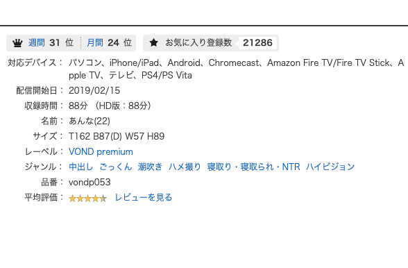 那时候她就很猛了,文案说她是「モデル系美女(麻豆级美女)」,又说很久没干有够痒的她「有够可爱」、「星格好」、「很色」以及「超敏感」,绝对值得「最强素人」的封号,而作品累积超过2万个赞以及到现在都还能挤进销售排行榜也说明了加美杏奈确实有两把刷子,从影迷留言称赞这位女星「歴代ナンバー1(历代第一)」、「リアルなエロさ(真的很色)」、「素人系暗黑最高の作品」就知道她是真货,大家都射得很爽⋯