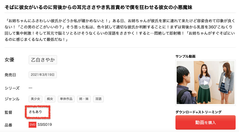 为什么有此一问呢?说来也要怪我,一来是乙白さやか(乙白沙也加)之前的拍片太过密集,不像是专属女星该有的样子;二来她在报告摄影工作的时候我看到了“さもあり”这位导演的名字,这个导演过去从来没和S1合作、大多是拍企划女星的,所以我忍不住悲从中来?