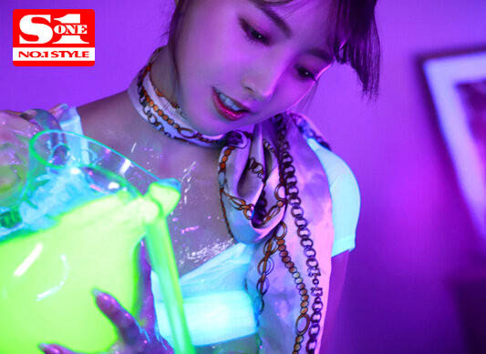 有多黏?从剧照就可以看到,三上悠亜身上被浇了非常多润滑油,只是这些润滑油和一般的不太一样ー有的是萤光色的,把灯关掉会发出耀眼的光芒;有的则是球白色的,弄在身上像美劳课必备的南宝树脂白胶⋯