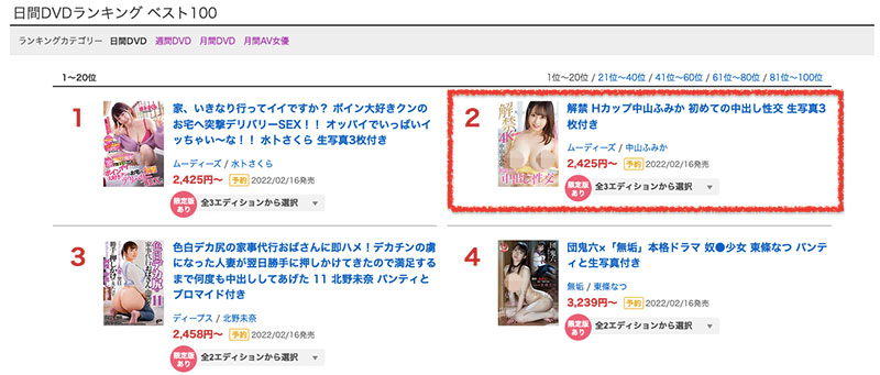 首先,里出し解禁有没有用?当然有用,中山ふみか(中山文香)今天的预约成绩是第2名,在Moodyz的专属女星中只输给了“水卜さくら(水卜樱)”,水卜さくら(水卜樱)已经告诉我们只要能好好发片她就是业界最强的女星之一,但其他呢?